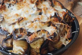 - Pon en cada lámina de berenjena un poco de la carne, encima un trozo de queso mozzarella, enrolla, ves poniendo en una fuente o molde los rollitos. Así hasta que esté toda la berenjena.