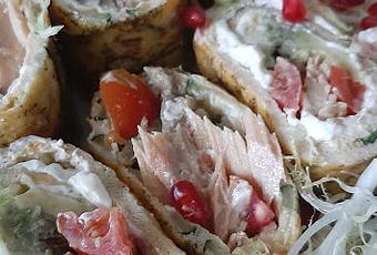 Despegar, girar para que quede la parte bonita hacia fuera y rellenar con el resto de ingredientes, yo le he puesto estragón y eneldo.