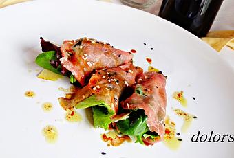 A los que sois reacios a la carne cruda, yo antes también lo era, deciros que lo importante es que la carne de ternera sea de gran calidad, si es así, adelante y sin miedo, además, es una capa casi transparente y va acompañada de ingredientes de vuestra elección, así que os animo a probar.