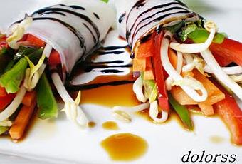 Colocar los rollitos en el plato y adornar con un poco de reducción de vinagre de Módena y salsear al gusto.