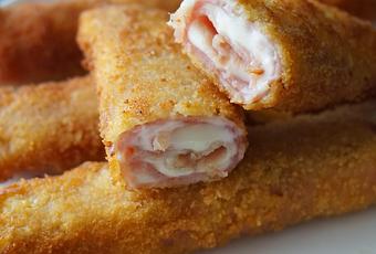 Esto si que es una receta de lo más facilita, muy sencilla de preparar, crujiente por fuera y con el queso blandito por dentro. Es una receta parecida a los flamenquines, pero en vez de poner lomo, ponemos jamón york, el relleno puede ser a vuestro gusto.