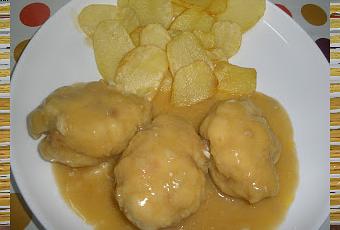 Podemos acompañar de unas patatas fritas cortadas no muy finas.. que así se impregnarán mejor de la salsa en el plato..