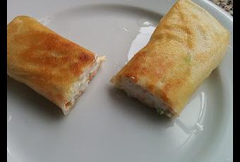 ROLLITOS DE PASTA BRICKNÚMERO DE PERSONAS8TIEMPO DE PREPARACIÓN15 minutosMATERIAL NECESARIOVitro, sartén, 2 cucharas, tijeras, cuchillo, cuenco grande, tabla, plato, pinzasINGREDIENTES250gr de queso para untar250gr de surimi fresco6 hojas de lechuga8 hojas de pasta brickAceite de girasolPREPARACIÓN1. Picamos finamente el surimi y lo depositamos en el cuenco grande.2. Picamos finamente la lechuga y la mezclamos con el surimi.3. Con las cucharas, mezclamos la lechuga y el surimi y añadimos el queso y mezclamos nuevamente hasta que quede homogéneo.4. Depositamos un poco del preparado anterior en el extremos de una hoja de pasta brick y enrollamos un poco.5. Doblamos los laterales del rollo que hemos empezado y acabamos de enrollarlo.6. Repetimos el proceso con las otras hojas de brick restantes.7. Freímos en aceite bien caliente.OBSERVACIONESPodemos sustituir el surimi por gamba pelada.Podemos añadirle zanahoria rallada al relleno.