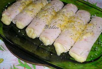 - Extendemos las lonchas de pavo y las rellenamos con la bechamel. Enroscando como si fueran un canelón.