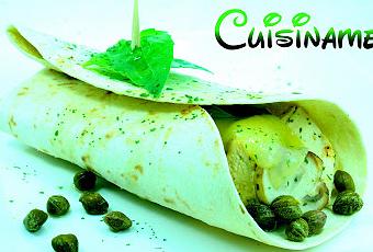 6 Tortitas de trigo 1 Pechuga de Pollo 100 gramos de Champiñones 40 gramos de Alcaparras 60 gramos de Queso Camembert 12 hojas de albahaca 1/2 Limón Sal Perejil Aceite de Oliva