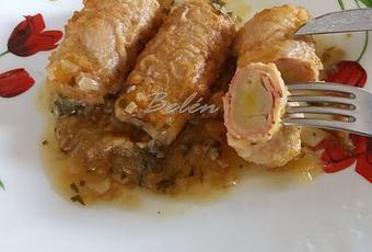 Ingredientes:8 puerros 8 lonchas dejamón cocido3 dientes de ajo1 cebolla3 huevosharina1 copa de vino blancoAOVEperejilsal
