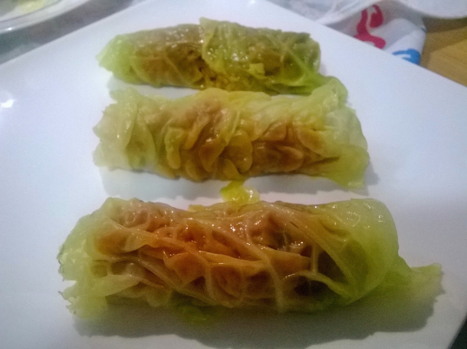 Lo primero que vamos a hacer es en una cazuela la llenamos de agua y la ponemos a hervir. Echamos un poquito de sal y cuando el agua este hirviendo echamos las hojas del repollo. Dejamos las hojas desde que empieza a hervir 15 minutos más o menos.Mientras hierve el repollo, en una sartén hacemos el sofrito, echamos un poquito aceite de oliva y dejamos que se caliente. Cuando tengamos el aceite caliente echamos el diente de ajo picado y lo doramos. Tenemos el ajo doradito, echamos la cebolla picada y el pimiento picado, lo sofreímos (Podemos también echar un poquito de agua para que se poche la cebolla y el pimiento) y cuando tengamos la cebolla pochada echamos la carne picada que hemos salpimentado.Ponemos las hojas de repollo en un paño de cocina y las tapamos. Ahora cogemos las hojas, empezamos a rellenar las hojas de repollo y las hacemos en forma de rollo.