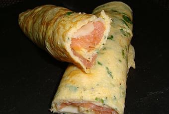 batir un huevo por persona, echar una pizca de sal y otra de pimienta molida, añadir el perejil picado y hacer el huevo como para creps.
