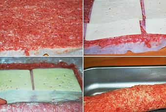 Preparamos la carne picada igual que si fuésemos a hacer filetes rusos o albóndigas: mezclamos con huevo, ajo, perejil etc.... (cada uno como tenga por costumbre).