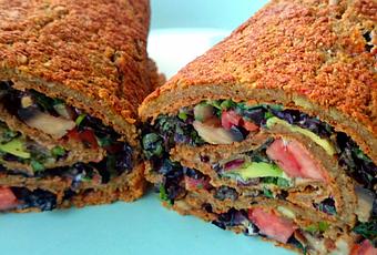 Para el relleno:♥ 3 cdas de queso cremoso Sheese con cebollino o mayonesa vegetal♥ 10 hojas de lechuga roble♥ medio manojo de cilantro picado♥ medio aguacate♥ 3-4 champiñones laminados salteados♥ 1 tomate picado