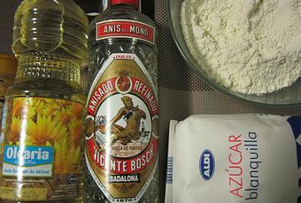 INGREDIENTES:100ml. de aceite de girasol.60ml de anís.100g. de azúcar.Una pizca de canela.250g de harina.