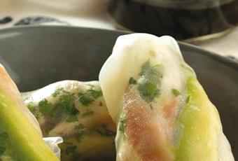 Preparación1. Hidrata las hojas de arroz en agua tibia una por una. Sécalas cuidadosamente con una toalla.