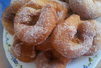 y las iremos friendo en abundante aceite caliente vamos sacando en un plato con papel absorbente y los vamos pasando por azúcar.