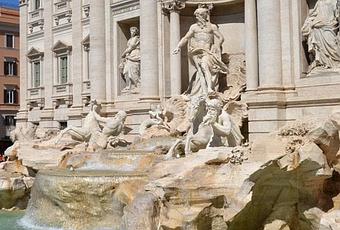 La Fontana di Trevi es una de las mayores fuentes monumentales barrocas de Roma, está situada en el cruce de tres calles, marcando el punto del Aqua Virgo (Acqua Vergine), uno de los antiguos acueductos que suministraban agua a Roma, los técnicos romanos localizaron esta fuente de agua pura, a solo 22 kms de la ciudad. En 1625 el papa Urbano VIII, encontrando la fuente anterior poco dramática, sosa, poco original y poco monumental, pidió a Gian Lorenzo Bernini que esbozase posibles renovaciones, pero el proyecto fue abandonado a su muerte y recuperado por Nicola Salvi que murió en 1751, con su obra a medio terminar, siendo finalizada en 1762 por Giovanni Pannini.