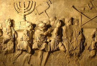Bajorrelieve en panel sur del arco de Tito (siglo I d.C., Roma). Procesión de victoria romana sobre la primera guerra judía (66-73 d.C)