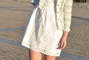 Domingo de nuevo, y otra semana que termina. Para hoy quiero enseñaros el último de mis looks de vacaciones. Este vestido de inspiración Valentino ya me lo habíais visto en otra ocasión, pero esta vez lo he combinado con chaqueta de tweed en los mismos tonos que el vestido y zapatos-joya negros.