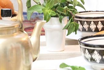 Si habéis estado alguna vez en un riad marroquí, sabréis que a la caída de la tarde los patios principales se llenan de preciosos farolillos con una luz tenue que junto al relajado ruido de las fuentes nos invitan a un momento de descanso. Para el desafío de Blad de este mes queríamos ofrecer un ambiente sosegado, de calma y espiritualidad, que gira en torno al ritual del té. El olor a hierbabuena, el pan recién horneado y las cosas sencillas y cotidianas (pero no por ello menos bonitas) de la tradicional vida marroquí nos han cautivado una vez más.