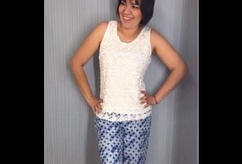 Para este viernes ,elegí un conjunto de unos pantalones ,en tonos azules y blanco,con un diseño de rombos ,y mi blusa es de color blanca de encaje ,se ve hermosa en verdad.