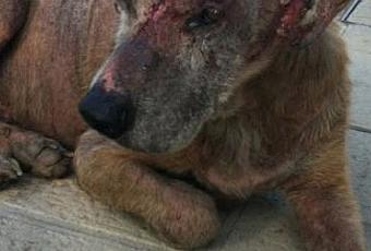 Este pobre animal es RONNY, vive en la calle y no sabemos cuanto tiempo llevará así, pero seguro que mucho, porque su escalofriante estado no se alcanza de un día para otro.