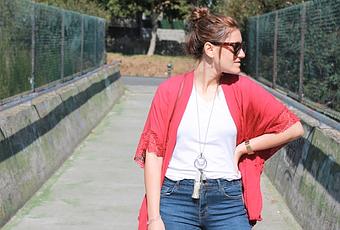 Las rayas laterales en jeans para dar contraste y aportar un toque diferente a los estilismos Ya sea en leggings, tejido denim o de algodón, los pantalones con una o varias rayas laterales son tendencia, donde la clave reside en que estilizan y alargan nuestras piernas. Además de añadir un toque diferente a nuestros looks, tanto si se trata de un estilo deportivo como si se trata de uno más arreglado o formal. Estas prendas se caracterizan por ser versátiles y adpatarse a diferentes situaciones y ocasiones, donde lo que prevalece es la comodidad ante todo. En esta ocasión os hablo de esta tendencia en jeans como los que os enseño en las fotos de hoy. Combinados con prendas básicas del color o colores de la franja así blusas sueltas si queremos añadir un toque más sofisticado y que haga el contraste con la toque deportivo de esta prenda. Podemos llevarlo independientemente del color de la franja con zapatos, bailarinas, sneakers o botas. En este caso opté por un look cómodo y chic a la vez, donde los protagonistas son los jeans con la franja en color blanca y roja y que combiné con camiseta básica en color blanco junto con las sneakers y el collar en toques métalicos. El color rojo y chic en el bolso bandolera y el kimono con encaje en las mangas y la espalda. ¿Qué os parece el resultado? Espero que os haya gustado. Besos y feliz Miércoles.