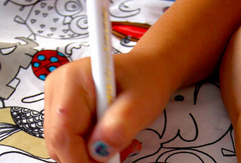 Ésta traza las formas básicas del motivo de la prenda y… ¡voilà! Es el niño quien debe pintar dicho motivo con unos rotuladores que, además, son lavables y utilizables tantas vez como se quiera. ¿No es genial?