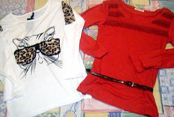 http://www.ebay.com/itm/Japan-Korea-Fashion-Funny-Bespectacled-Cat-Kitty-Long-Sleeve-TEE-Shirt-TOP-White-/170912105817?pt=US_Womens_Tshirts&hash=item27cb27c559Y mi segunda compra es la camiseta de la derecha, de un color caldera con encaje y un cinturón de leopardo muy bonita, la compré en la tienda MISS al 50% me costó 5 euros y al ser de manga larga mucho mejor ahora que nos despedimos del verano!