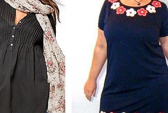 *Escoge sacos de forma cuadrada, que son amplios y cubren la barriguita. *Busca los vestidos de tubo generosos, que crean una línea de columna desde tus hombros hasta tu pierna. Este estilo da la ilusión de que tu forma es más lineal. *Evita cualquier combinación de prendas de vestir que definan tu cintura, incluyendo el lucir cualquier cinturón o lazo. Vía: Todo para gorditas