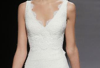 En la nueva colección de Rosa Clará destacan las aplicaciones de encaje y los bordados de pedrería, junto con las transparencias. Como tejidos destacaron: el tul, el mikado y la organza. No faltaron los escotes en forma de corazón, las faldas de tul con mucho vuelo, los cuellos de pico y los vestidos de novia de cuerpo sirena. También había modelos de estilo años 20. Como veis, Rosa Clará tiene un vestido para novias de todos los estilos. Incluso para novias más modernas que quieren optar por vestidos con bolsillos o pantalones. Os dejo algunas fotos de los modelos que Rosa Clará presento en la Barcelona Bridal Week 2014: