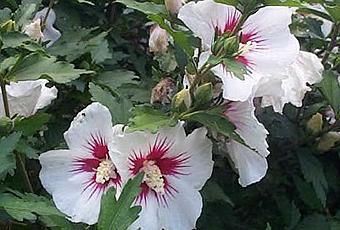 Arbolito o arbusto de copa estrecha y erguida. Sus hojas son caedizas, alternas o íasciculadas, aovadas o rómbicas y dentadas. Posee flores brevemente pedunculadas, axilares, con forma de campanas, que pueden ser simples o dobles, en colores blanco, rosado, lila, rojo, azul y blanco con manchas púrpuras. El fruto es una cápsula de color pardo-amarillento, cubierta de pelos amarillos. Se reproduce por semillas y estacas.