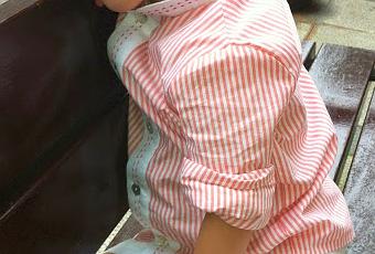 Es un conjunto a simple vista sencillo: Camisa cuello Mao y pantalón con detalles en coral en la cintura, pero puesto llama la atención!!! Está guapísimo!!!! Y además como le queda pelín grande lo mismo lo aprovechamos el veranito que viene, jejejejejej!!!!!!!!!!