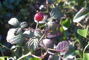 Es febrero, y, en defecto de flores, tenemos escaramujos, de pequeño tamaño, rojos y esféricos, y hojas, que por algo es la rosa siempreverde. La fructificación no es excesivamente abundante. En condiciones de sombra, es normal que el rosal no dé floraciones demasiado copiosas. Teniendo en cuenta el lugar donde se da esta especie de rosal, no es de extrañar que los híbridos de sempervirens se aconsejen para exposiciones poco soleadas.