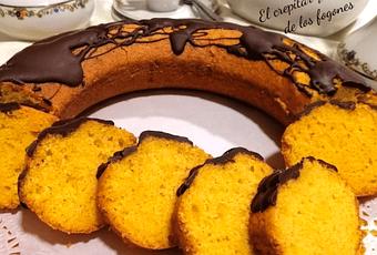 No lo hice al pie de la letra, sustituí la ralladura por azúcar de vainilla, no puse gotas de chocolate y para la decoración utilicé chocolate fundido simplemente. Debo decir que el resultado ha sido increíble, rico no, lo siguiente. Me apetecía hacerlo en un molde de roscón, de ahí el nombre que le puse «rosca de calabaza». Sea cual sea el molde que utilices el éxito está más que garantizado, hazme caso, no dejes de probarla o te arrepentirás ¡es una verdadera delicia!.