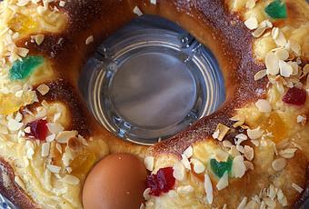 Esta rosca o roscón, al tener un huevo, es de Pascua, pero la misma receta sirve para hacer la de Reyes, colocando un muñequito de porcelana dentro de la masa.