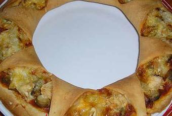 La de tiempo que llevaba con una foto de como se hacia esta rosca en la carpeta de pendientes del ordenador. Quizá un año sea quedarme corta. La ví en una de las publicaciones de "facilísimo" y la descargue, pues era un paso a paso de como se hacia; porque lo que es mi cabeza últimamente esta de mal!!!!!! y aquí no me río. Vos comento una anécdota para que lo veáis. El otro día cargué el movil de mi hija porque estaba a punto de caducarle la tarjeta. Ella solo lo usa cuando se queda con la abuela para hablar con nosotros, bueno es que yo neo me acordaba de que lo había recargado en la librería y aquel mismo día por la tarde se lo volví a recargar en Movistar. De todo esto me enteré días después al encontrar el tiquet de recarga de la librería del que para nada era consciente. Estamos inmersos en un mundo de prisas que aveces da miedo. Porque fue precisamente por eso, por prisas por tener mil cosas en la cabeza....... Pero vamos a la rosca no vayamos a olvidarnos de ella jajaja. Hice masa de pizza y decidí presentarla así, relleno muy sencillo, pero se podría rellenar tanto de salado como de dulce y también con otro tipo de masa. Mas que nada la recta es para que veáis lo bonito que se puede presentar un pan relleno o en este caso una pizza. Probaré con una masa de pan y en dulce para que quede mas elevada y gordita, así mucho mas bonita. Quedamos en que el relleno es orientativo, rellenar la pizza de lo que mas vos guste