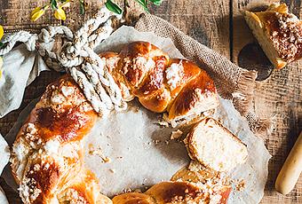 Ojeando el libro de Pam de nuevo, me encontré esta rosca trenzada de Pascua. La verdad que en mi casa no hay tradición de Semana Santa, realmente lo único que nos gusta de la Semana Santa son sus festivos, aunque este año como si no los hubiera! Los dulces nos gustan, eso cae de cajón, jejeje, así que no se le puede decir que no sea en la época que sea.