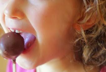 Cuando tengamos listas las bolas, las guardamos en el congelador para que se endurezcan un poco y sean más manejables a la hora de envolverlas en chocolate. Tras media hora aproximadamente, las sacamos, las pinchamos en una brocheta y las sumergimos en un baño de chocolate fundido, dejando que escurran el sobrante y dejándolas listas para su consumo.