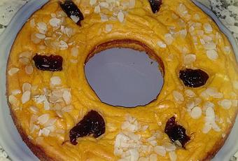 Previo a hacer el roscón de reyes de este año, me he decantado por probar este roscón de calabaza, que evidentemente por los ingredientes es más un bizcocho que un roscón, el resultado es curioso, porque por los aromas recuerda al roscón.