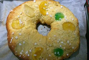 Preparación:Lo primero es preparar la esponja, para lo que desmigamos la levadura prensada en la harina y vamos añadiendo la leche amasando hasta formar una bola.Le haremos un corte en forma de cruz y la cubrimos en un cuenco con agua templada ( unos 37º). Debe de quedar cubierta ya que sabremos que está lista cuando la bola salga a la superficie y veamos la cruz ( unos 10 minutos más o menos)Ahora comenzamos a preparar la masa. Unimos el resto de ingredientes a la "esponja" y comenzamos a amasar en un bol hasta tener una masa manejable.Preparamos la superficie de trabajo ( es decir, encimera de cocina enharinada en mi caso) y comenzamos a trabajar la masa.¿Cuando está lista? Cuando no se nos pegue a las manos pero tampoco se cuartee. Debe tener una consistencia elástica y homogenea, no se rompe ni se cuartea, se puede estirar con facilidad y no forma grumos, y al hundir los dedos en ellas, recupera su forma en unos segundos.Bueno pues una vez lista formamos una bola girando los bordes hacia dentro y la dejamos reposar en un bol tapada a una temperatura cálida ( 22-24º) unas 2 horas o hasta que doble o triplique su volumen.Una vez pasado este tiempo, amasamos sólo un poco para romper las burbujas de aire y la ponemos en la bandeja de horno sobre papel de hornear ( valga la redundancia) formando un rosco.Es importante distribuir la masa uniformemente alrededor del agujero para que el roscón quede bonito.Pintamos con huevo batido decoramos con lo que queramos y volvemos a tapar para dejarlo reposar a temperatura cálida otras dos horas ( debe doblar su volumen).Y ya estará listo nuestro roscón. Volvemos a pintar con huevo batido y al horno precalentado a 170º unos 20 minutos.Deberéis ponerlo en la parte central del horno y hornear por arriba y por abajo ( si véis que se empieza a tostar demasiado, cubrir con papel de aluminio).