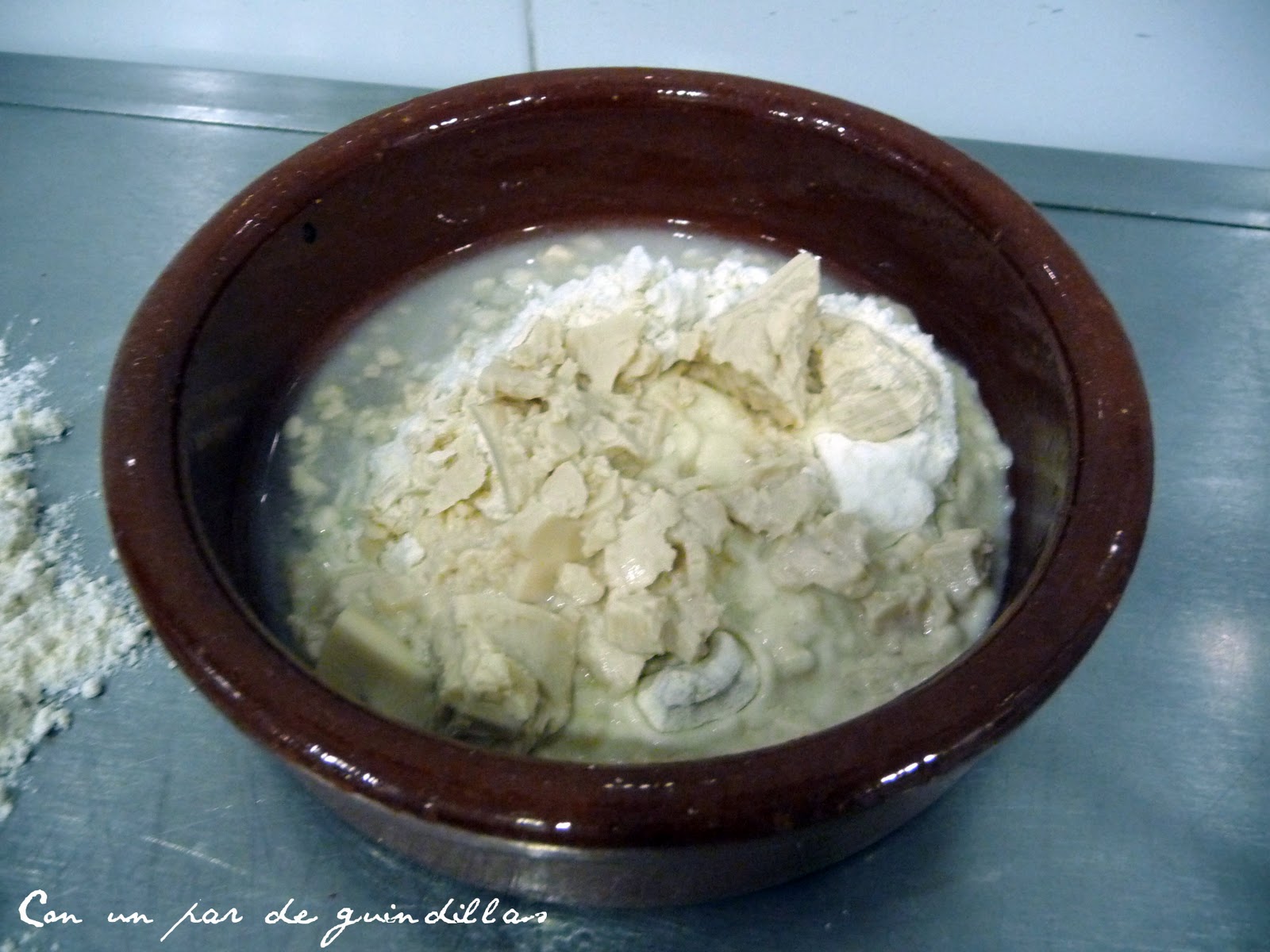 - Amasamos formando una bola que dejaremos fermentar hasta que alcance el doble de su volumen. Atención, esto así dicho parece fácil, pero no lo es, la masa esa es muuuy pegajosa, trabajadla con decisión y paciencia.