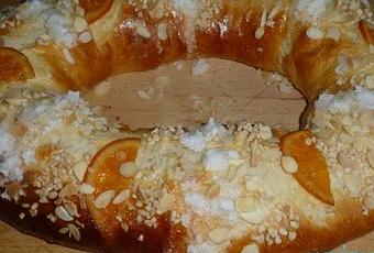 Para este roscón se prepara una masa madre y una infusión de cítricos en leche el día anterior. Los aromas que desprende la leche al día siguiente le confiere un sabor muy bueno.