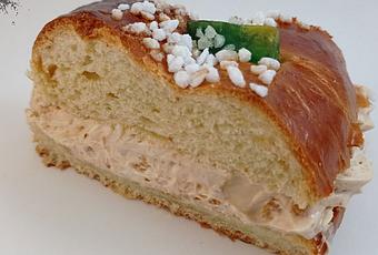 - Una vez tengamos el roscón frío, lo partimos por la mitad.