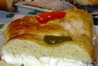 Para mi sorpresa, el día cinco me levanté con la idea fija de hornear un roscón. La culpa es vuestra, de visitar vuestras cocinas y ver vuestros roscones me entraron unas ganas increíbles de comer roscón, pero "made in" mi horno, casero 100%.Me antojé de varios de vuestros roscones pero una receta me llamó mucho la atención, por su sencillez y sobre todo porque se hace casi sin amasar.El resultado: un roscón monstruoso... monstruosamente grande, monstruosamente rico y monstruosamente tierno y encima monstruosamente fácil de hacer.
