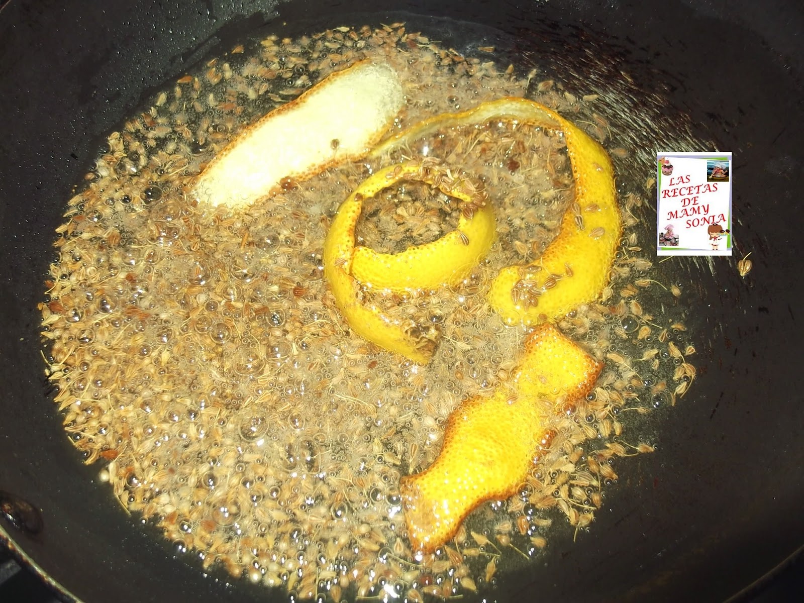 Apagamos el fuego y dejamos en ese calor al que habremos añadimos las dos cucharadas de matalahuga(anís verde), y dejamos templar y reservamos.