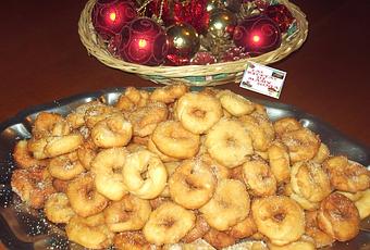 Calentamos el aceite y nos untamos aceite en las manos y vamos formando bolitas a las que iremos introduciendo un dedo en el centro para darles la forma de roscos.