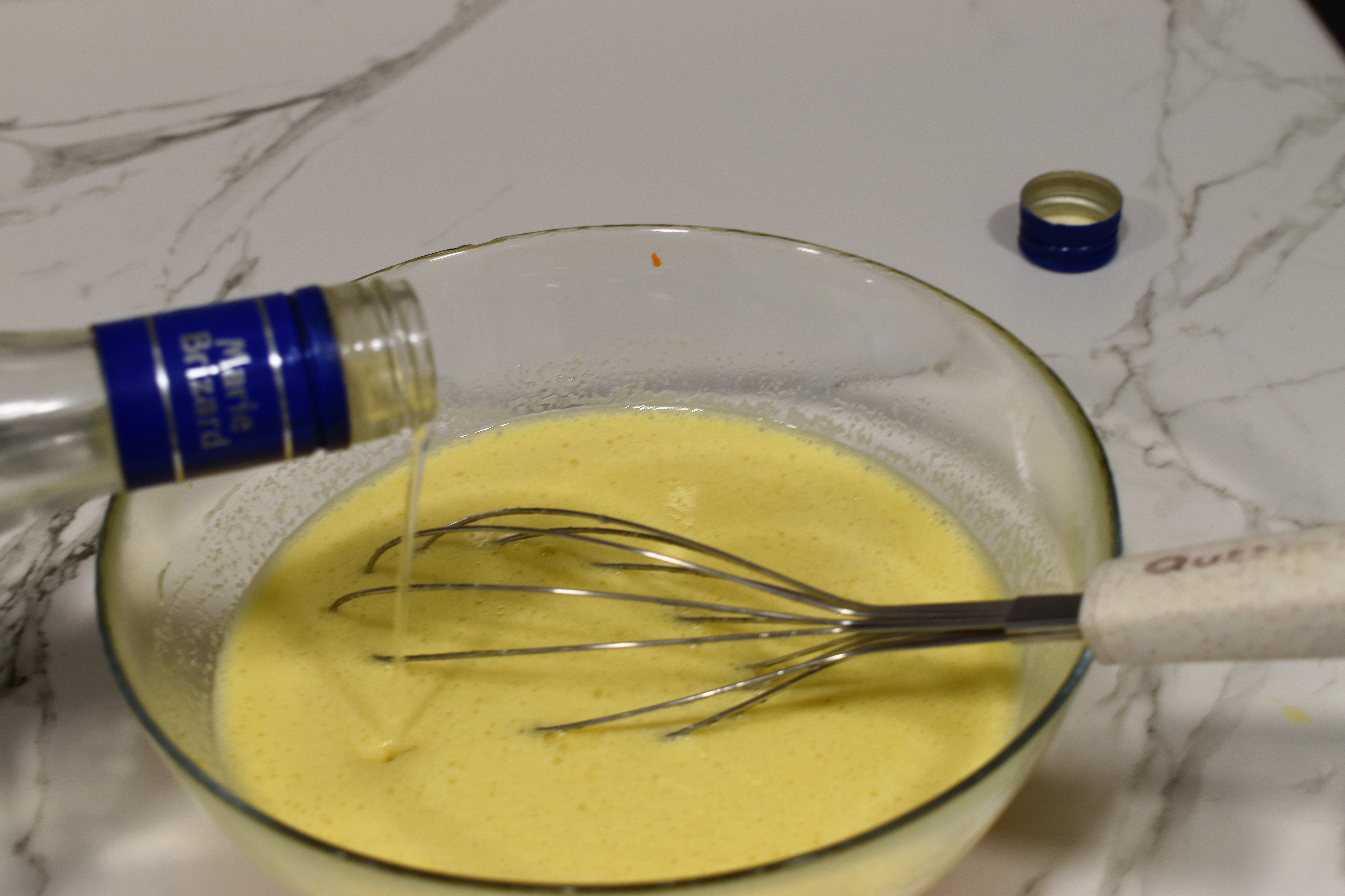 Añade el aceite infusionado con la naranja y el limón