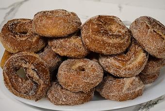 Prepara un plato con papel absorbente y ves poniendo hay .Vuelve a freír otros tantos y mientras rebozarlos en el azúcar con canela.