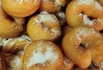 Freímos los roscos en aceite caliente, le vamos dando vueltas hasta que estén dorados y los vamos colocando en una fuente con papel de cocina. Tener cuidado que el aceite no este demasiado caliente pues se os pueden quemar y quedar crudos por dentro.