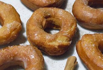 Preparar una mezcla de azúcar y canela y espolvorear por encima de los roscos una vez pintados con el glaseado y presentar.