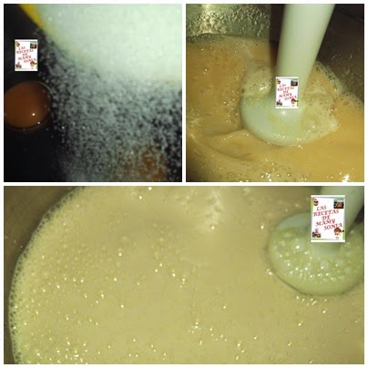 En primer lugar batimos los huevos con el azúcar hasta conseguir una mezcla blanquecina