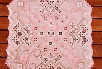Lo que más me gusta es el contorno, que lleva un doble festón haciendo el efecto de parecer que va superpuesto sobre un fondo rosa. Ha quedado muy bonito.